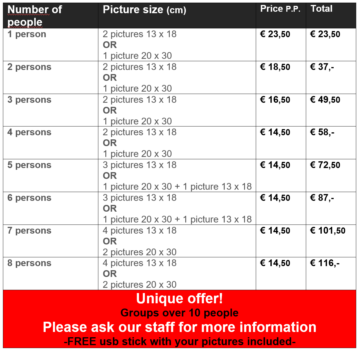 At Zwarthoed Photographers, it is important to us that you leave our studio a satisfied customer who will want to recommend us to your friends, acquaintances and colleagues. This is why our prices are modest. We have a money back guarantee also. So you can be sure of a perfect result!